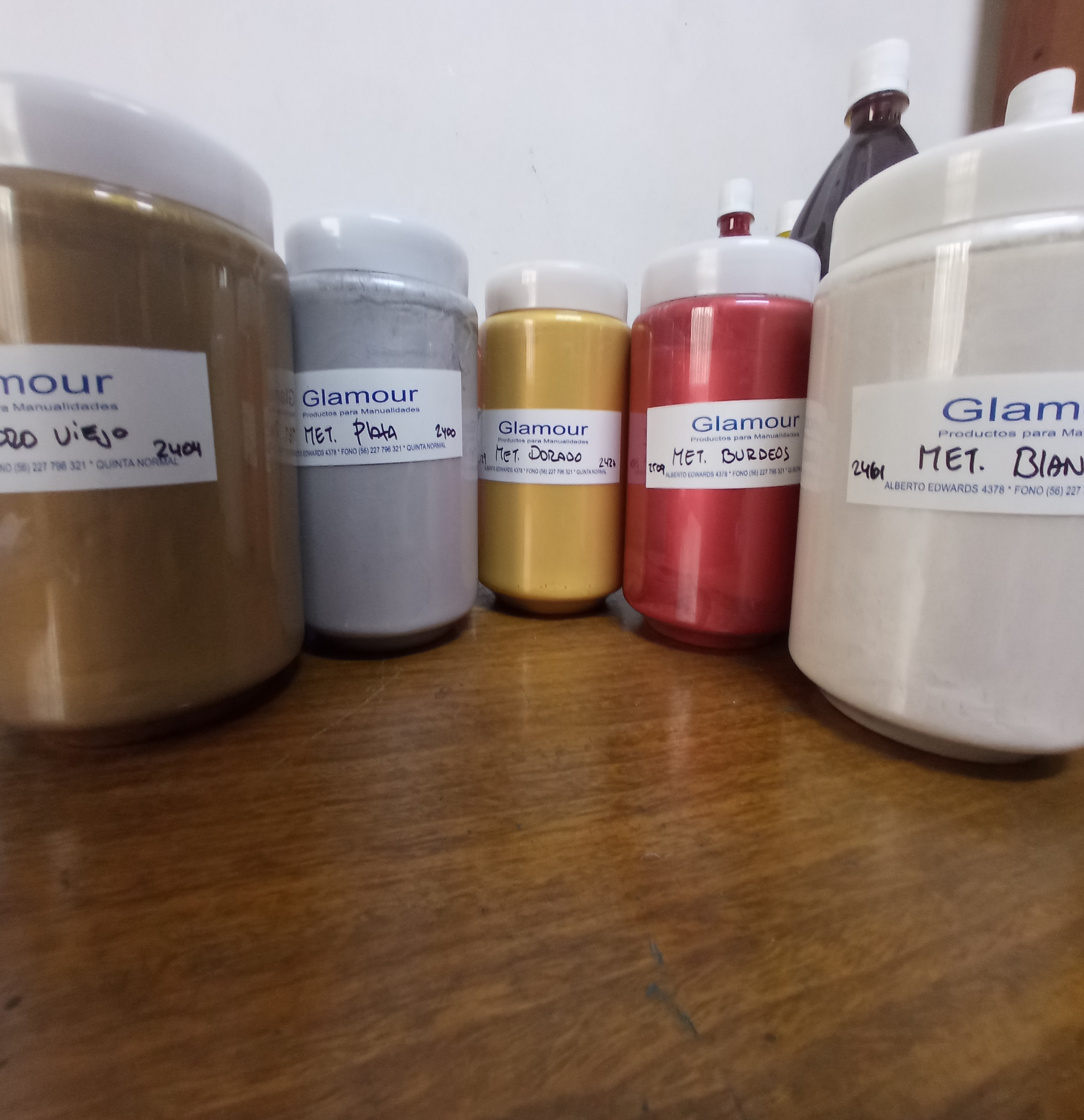 Las Pinturas Metalizadas son pinturas base agua de colores intensos que se utilizan para pintar figuras de yeso, ziña, madera y cartón Son mezclables entre si, de secado rápido y diluible con agua. Esta serie consta de un sellante para policromía y un barniz brillante de terminación, ambos diluibles con agua. Esta serie cuenta con cuatro tonos metálicos.